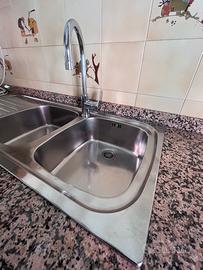 lavandino in acciaio inox da incasso con 2 vasche e gocciolatoio senza miscelatore. in ottimo stato