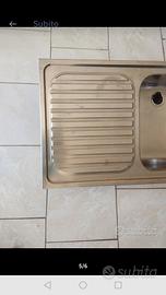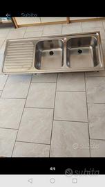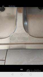 Lavandino in acciaio inox a due buche con scolapiatti a sinistra con tappi,usato ma ancora in buone condizioni generali.