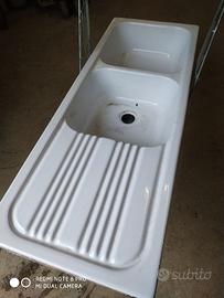 lavandino in ceramica 120 x 45 x h.20 con 2 vasche e scolapiatti
