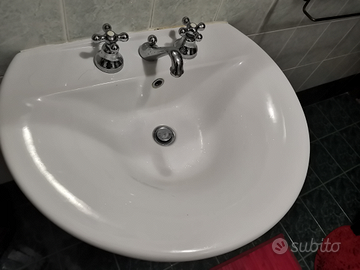 Vendesi lavandino in ceramica con colonna copriscarico, completo di rubinetti, scarico tubi ecc, euro 60.