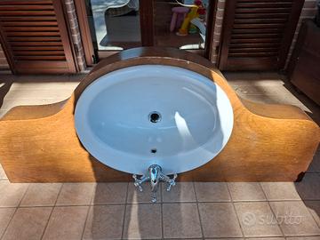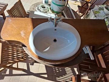vendo lavandino in Ceramica tenuto perfettamente, incassato in piano in legno con anche rubinetteria