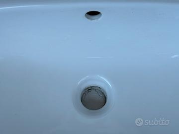 Lavandino in ceramica Pozzi Ginori modello stondato con troppopieno e mezza colonna copri scarico. Prodotto in perfette condizioni, pari al nuovo. Misure: Larghezza 65 cm Altezza 15 cm Profondita 46 cm Vendo per inutilizzo