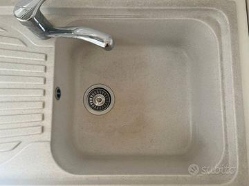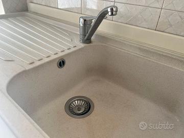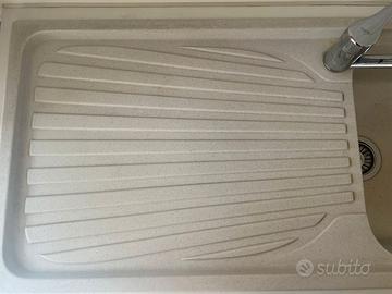 Lavandino da cucina in fragranite con sgocciolatoio cm 116 di cui 45 di vaschetta, corredato da miscelatore