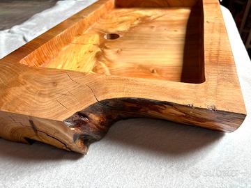 Lavandino rettangolare in legno di cedro americano aromatico, ricavato da un unico blocco, interamente fatto a mano. È possibile utilizzarlo in appoggio su un top o mobile oppure sospeso fissato alla parete.