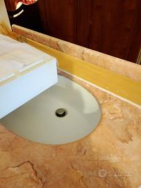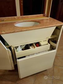 Vendo un lavandino in marmo rosa con relativo mobile sottostante bianco lucido e specchio abbinato.