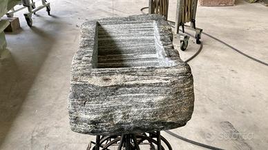 Lavandino/lavabo/lavello in pietra (nero di Nibbio) con finitura bocciardata e spazzolata con trattamento antimacchia.