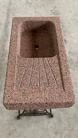 Lavandino in pietra (rosso balmoral) con una vasca e scivolo per scolo acqua misure cm 83x44x16h.