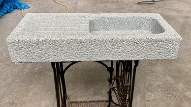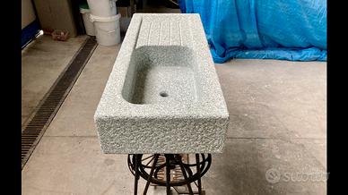 Lavandino/lavabo in pietra ( granito verde di Mergozzo) con una vasca e scivolo per scolo acqua.