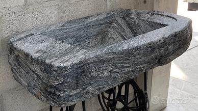 Lavandino/lavabo/lavello in pietra (Nero di Nibbio) con una vasca e due scivoli per scolo acqua.