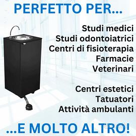 Il lavandino è nuovo, solo aperto e provato, perfettamente funzionante. Certificato per ASL, è ideale per negozi, studi medici, centri estetici, ambulanti e tutte le situazioni in cui non è disponibile un collegamento diretto alla rete idrica ed elettrica.