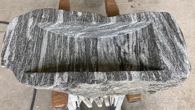Lavandino/lavabo/lavello in pietra (nero di Nibbio) con finitura bocciardata e spazzolata con trattamento antimacchia.