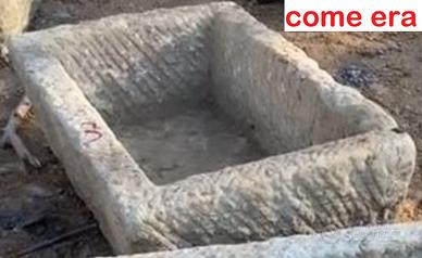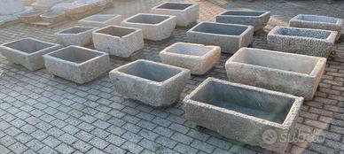 Sono ricavate da mangiatoie antiche. In granito di colore grigio o beige. Sono robuste e pesanti. Non sono di cemento, graniglia o polvere di marmo; non soffrono il gelo; vanno bene anche per esterni.