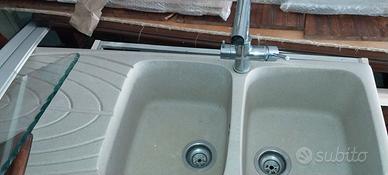 vendo lavandino in fragranite in ottime condizioni con 2 bocche, sgocciolatoio e miscelatore per cambio arredamento.