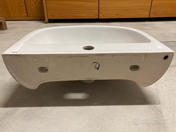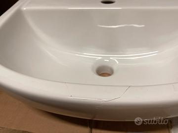 Lavandino sospeso nuovo ma purtroppo nella parte anteriore ci sono delle crepe come da foto. Misure 50x38 Valore commerciale 85 euro Ritito a mano