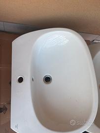 Due Lavandini Ideal Standard I.LIFE A lavabo sospeso o da appoggio L.65 cm, monoforo, con troppopieno, colore bianco finitura lucido T451001