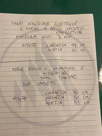 Disponibili da subito, ritiro a cura dell'acquirente. Lavandino (150€) e piano induzione (100€).