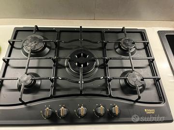 Piano cottura 5 fuochi cm 75x51 lavandino una vasca mezzo cm 49x61 e miscelatore con tubo estraibile nero