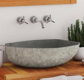 Lavandino Ovale in Pietra del Fiume Naturale (45-53) Nuovo mai usato per qualsiasi dettaglio o foto non esitate a scrivermi. Questo lavabo unico in pietra naturale non è solo un pratico lavandino per l'uso quotidiano, ma anche un ornamento per il vostro spazio abitativo. Sicuramente si adatta a qualsiasi stile di interni. La superficie interna è levigata, rendendo la pulizia molto facile. Il foro di scarico ha un diametro di 4,5 cm. Potete trovare diversi mobili coordinati in teak nel nostro negozio per ottenere un set di mobiletti completo per il bagno.