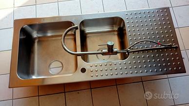 Lavandino acciaio 2 vasche, con rubinetto e tubi. Misure 116x50