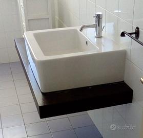 vendo lavandino rettangolare da appoggio GLOBO 60x50 con mensola di appoggio in legno color mogano 130x55. Come nuovo