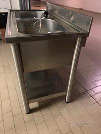 Lavandino in acciaio doppia vasca per cucina di ristorante o pizzeria.
