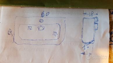Lavandino rettangolare in ceramica, nuovo, mai usato, marca Dolomite, dimensioni esterne 60x50 cm