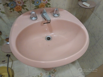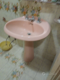 Originale vintage lavandino rosa con piede integro raro altre foto su richiesta guarda le altre mie inserzioni.