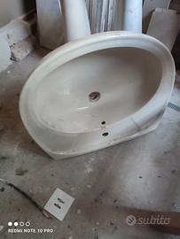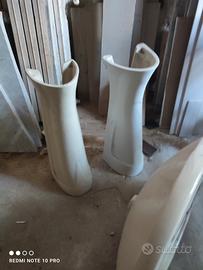 Due lavandini a colonna uno colore champagne. uno bianco completo di rubinetti. Vintage.