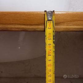 Vendesi lavandino di marca Scarabeo in ceramica montato semincasso su top artigianale in legno di castagno ricavato da antiche botti del vino. Piano dotato di staffe in acciaio inox già fissate al piano in legno. Predisposto per miscelatore da muro o adattabile, previo foro, ad un miscelatore da piano. Top in legno molto variegato in colore, dimensioni massime 150x52, spessore 35 mm ( dimensioni top eventualmente riducibili fino a 110 cm x necessità di installazione) Lavabo dimensioni 64x46. Distanza staffe 1 metro circa. Peso circa 30 kg. Installato in bagno mai andato in esercizio. Pari al nuovo.
