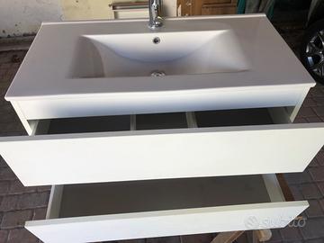 Lavandino sospeso con due cassettoni, usato pochi mesi e poi smontato per ristrutturazione. Le misure sono: Cm.91 di lunghezza Cm.52 di larghezza Cm.48 di profondità (91x52x48) Il miscelatore non disponibile! Vendo a €90