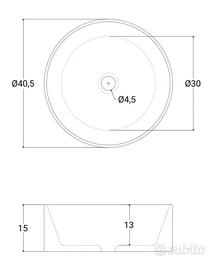 Vendo lavandino tondo in ceramica bianca di alta qualità e facile da pulire, perfetto per ambienti minimal o contemporanei. Diametro 40,5 centimetri. Altezza 15 centimetri. Ritiro in loco.