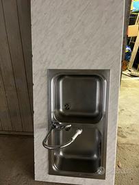 Lavandino cucina inox doppia vasca, compreso dí miscelatore e flessibili acqua calda e fredda.