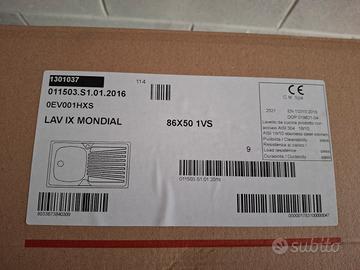 Vendesi lavello Mondial in inox nuovo, mai utilizzato ed ancora confezionato. Misure 86x50cm ad 1 vasca.