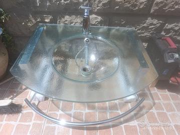 bellissimo lavandino in vetro con lavorazione ondulata e acciaio inox compreso di rubinetto ed eventualmente scarico inox di design. valore nuovo circa 800 euro nessun difetto nessun danno misure larghezza 70 cm profondità 60 cm con portasciugamani curvo sempre inox cedo al prezzo del rubinetto