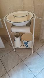 lavandino vintage completo di specchio e tutti gli accessori in ferro battuto.
