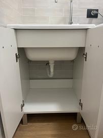 Fornito di vasca lavapanni in ABS metacrilato lucido, tavola di lavaggio in legno massello, sifone e troppo pieno, maniglia e piedino satinato