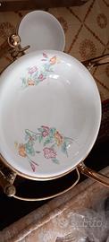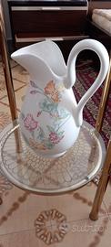 lavatoio stile antico in ferro verniciato dorato, composto da catino, porta sapone, brocca , specchio e porta brocca in cristallo lavorato
