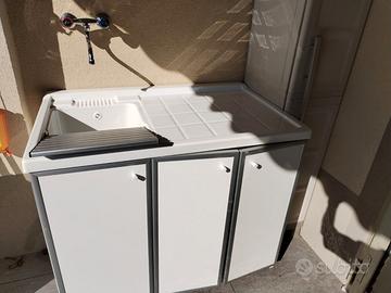 MOBILE DA ESTERNI 109X66 BIANCO CON 3 SPORTELLI, VANO LAVATRICE A DESTRA LAVATOIO A SINISTRA