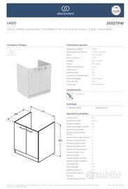PREZZO TRATTABILE Mai usato, è sempre stato nel suo scatolone originale. -Ideal Standard LAGO lavatoio da incasso 75 x 61 cm, bianco -Ideal Standard LAGO mobile sottolavatoio 715x588x823, bianco. -Con asse in legno.