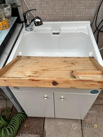 Vendo bellissimo lavatoio Tenuto bene con tutti gli accessori, coperchio di chiusura, miscelatore allungabile, cestello e asse x lavare in legno Misura 60x60 Altezza 81