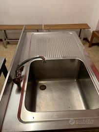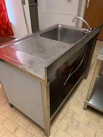 Lavatoio lavabo in inox 120x70 h85cm com armadietto ante scorrevoli.