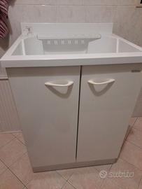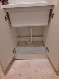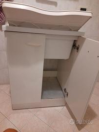 Vasca in plastica robusta, asse removibile inclinabile in due posizioni, con spazioso armadietto sottostante