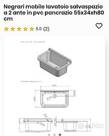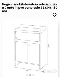 Vendo lavatoio bianco in PVC mai usato per errate misure infatti non è mai stato montato. Misure 55x34xh80