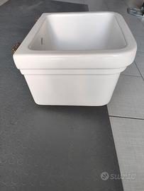 Lavatoio Pilozzo Dolomite salvaspazio cm. 39 profondità -- 42 larghezza --- 30 altezza. Bianco completo di Staffe regolabili per lavatoio e pilozza in ceramica con gambe a terra