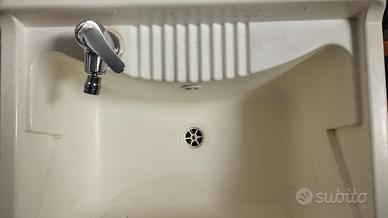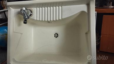 Lavatoio o lavandino in plastica completo di rubinetteria nuova.