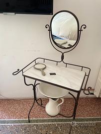 Lavatoio in ferro e marmo completo di bacinella e brocca, bellissimo