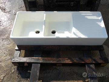 Lavelli in porcellana smaltata doppia vasca e gocciolatoio reversibili nel montaggio misure 120x45x20( NUOVI ) rimanenza di cantiere