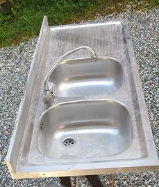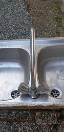 lavello doppia vasca inox con scarichi e miscelatore usato prettamente in cucina in muratura. tolto per arredare con mobili moderni...