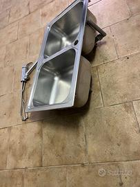 Vendo eccellente lavandino in acciaio inox a due vasche completi rubinetto, inoltre vendo contenitore in plastica porta rifiuti estraibile da sistemare sotto ilo lavandino, prezzo solo lavandino 65,00 - porta rifiuti 30,00 completo di tre contenitori, anche se in foto si ne vedono solo due, acquisto entrambi i due prodotti 85,00.