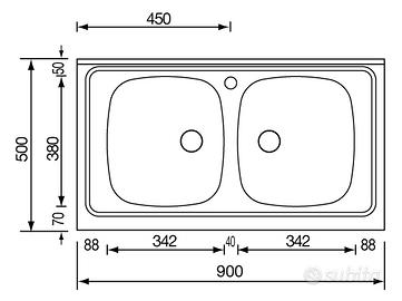 Lavello in acciaio 2 vasche con piletta standard manuale. Marca: CM Modello: Mondial Misure: Base 90 cm Profondità vasche15 cm 4 pezzi disponibili.